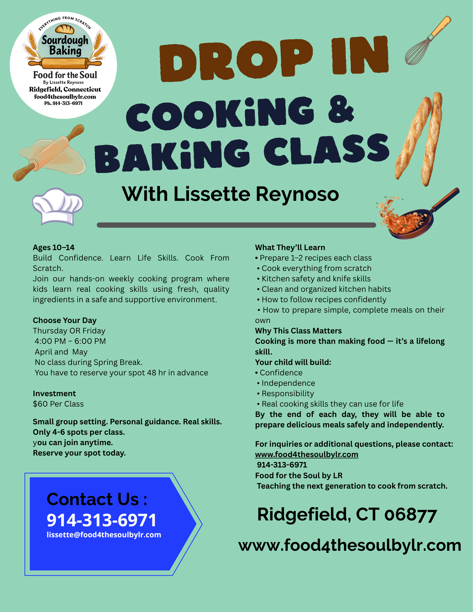 Join us for a fun, hands-on cooking experience where kids will make everything from scratch.